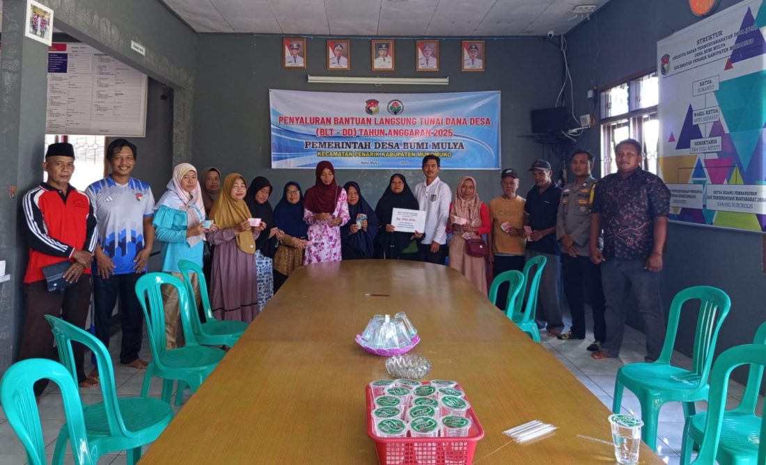 Mukomuko, Word Pers Indonesia – Pemerintah Desa Bumi Mulya, Kecamatan Penarik, Kabupaten Mukomuko, kembali menyalurkan Bantuan Langsung Tunai (BLT) Dana Desa (DD) tahap III untuk periode Juli, Agustus, dan September 2025. Penyaluran berlangsung di balai desa dengan dihadiri Bhabinkamtibmas, anggota BPD, perwakilan kecamatan, serta puluhan warga penerima manfaat.