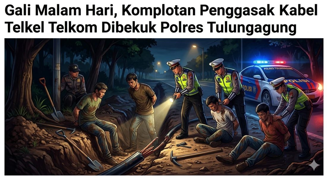 Kasus ini terungkap setelah warga melaporkan aktivitas mencurigakan berupa penggalian kabel pada Kamis malam (12/3/2026) sekitar pukul 23.30 WIB, di sekitar kantor Telkom Cabang Kalidawir.