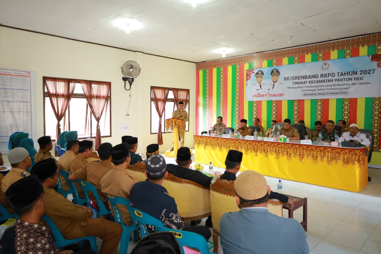 Meulaboh – Bupati Aceh Barat diwakili oleh Asisten Perekonomian dan Pembangunan Setdakab, Wistha Nowar membuka kegiatan Musrenbang RKPD Tahun 2027 Tingkat Kecamatan Panton Reu dan Kecamatan Sungai Mas di aula kecamatan setempat pada Selasa (3/2/2026).
