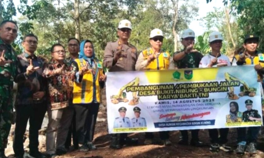 Lebong, Word Pers Indonesia — Pemerintah Kabupaten Lebong melalui Dinas PUPR-Hub bersama Kodim 0409/Rejang Lebong resmi memulai pembangunan pembukaan badan jalan penghubung Desa Bungin–Bukit Nibung, Kecamatan Bingin Kuning. Proyek ini ditandai dengan pelaksanaan titik nol pada Kamis (14/8/2025), menandai dimulainya pekerjaan secara resmi.