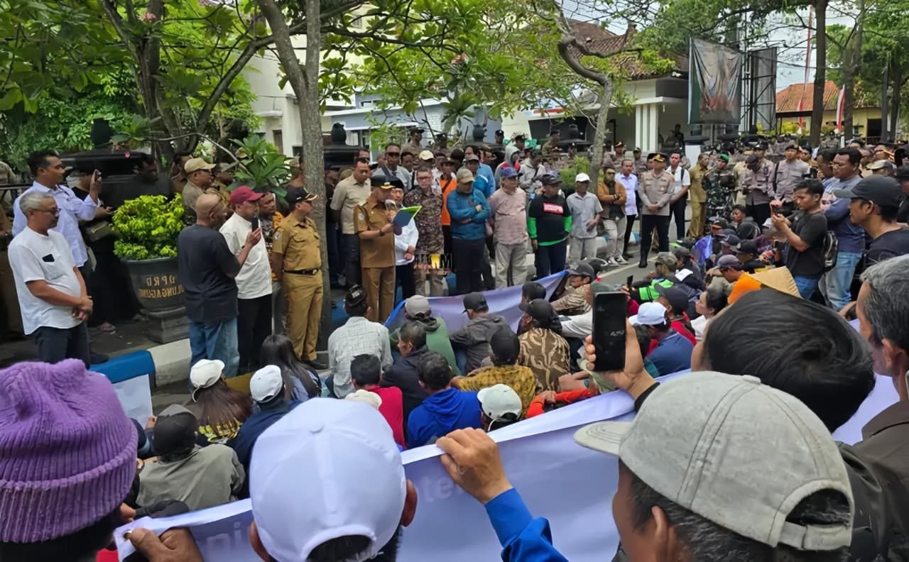 Di hadapan massa, Bupati Gatut Sunu menegaskan dirinya baru tujuh bulan menjabat dan menolak anggapan aksi ini dimanfaatkan untuk kepentingan politik.