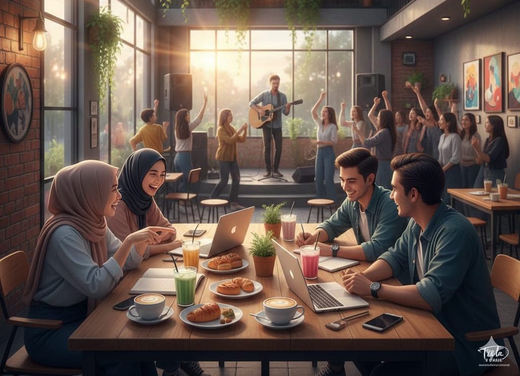 Bagi generasi milenial dan Gen Z, kedai kopi telah bergeser fungsi. Ia bukan hanya tempat menikmati minuman, melainkan ruang interaksi sosial yang fleksibel—bahkan menjadi alternatif ruang kerja informal.