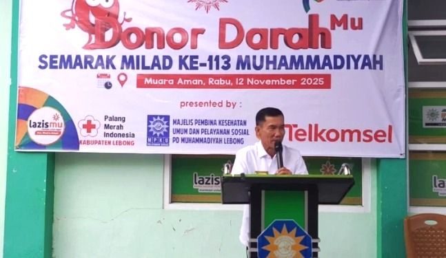 Lebong, Word Pers Indonesia – Gerakan kemanusiaan kembali digaungkan di Kabupaten Lebong. Dalam rangka Milad ke-113 Muhammadiyah, Lazizmu Muara Aman menggelar aksi donor darah yang dipusatkan di kantor Lazizmu, Kecamatan Lebong Utara, Rabu (12/11/2025). Kegiatan ini mengusung tema “Donor Darahmu, Wujud Kepedulian dan Kemanusiaan” dan diikuti sekitar 50 peserta dari berbagai kalangan.